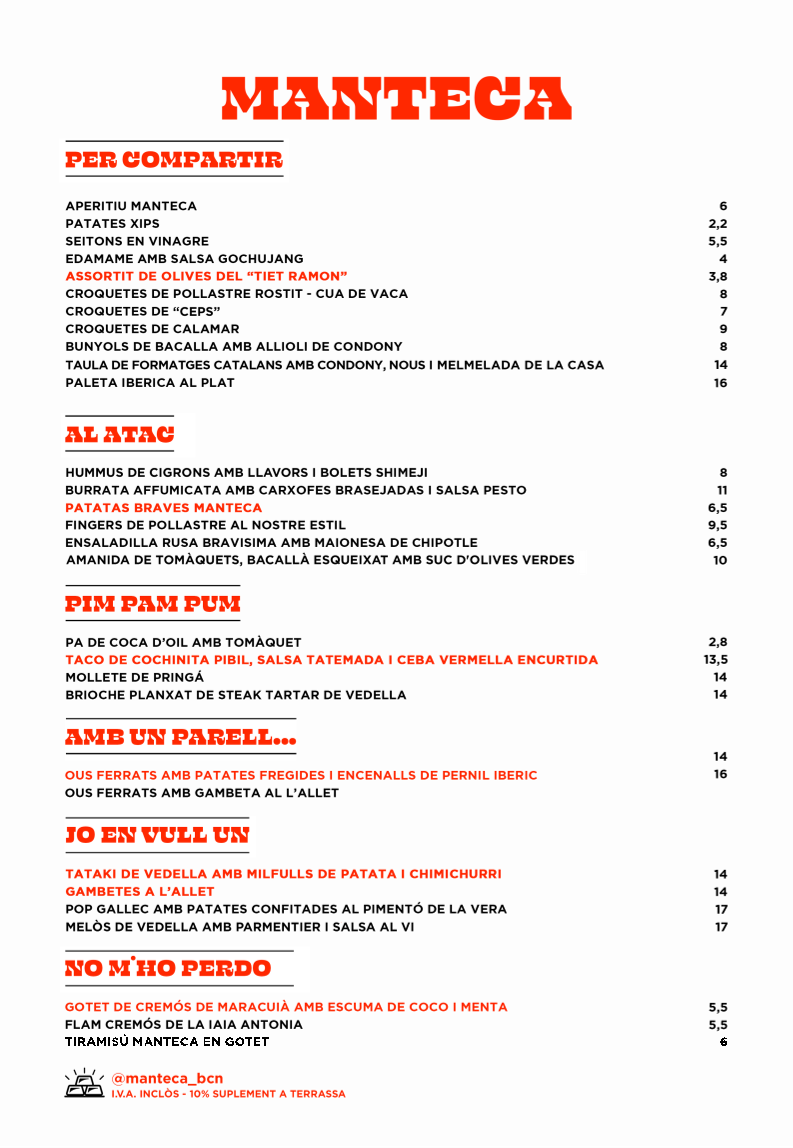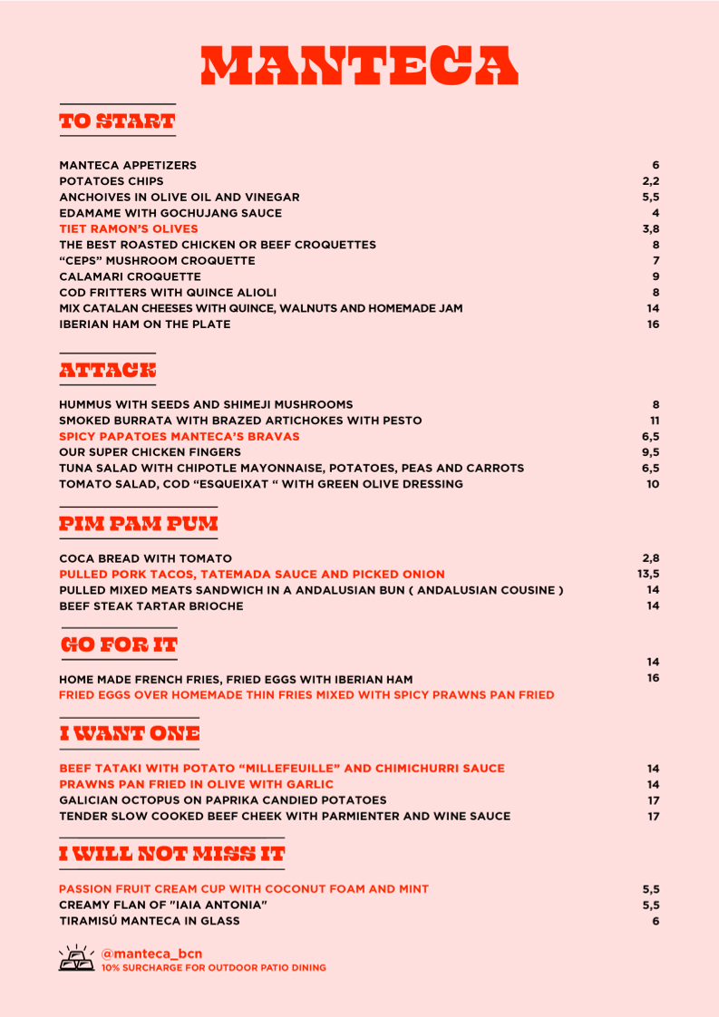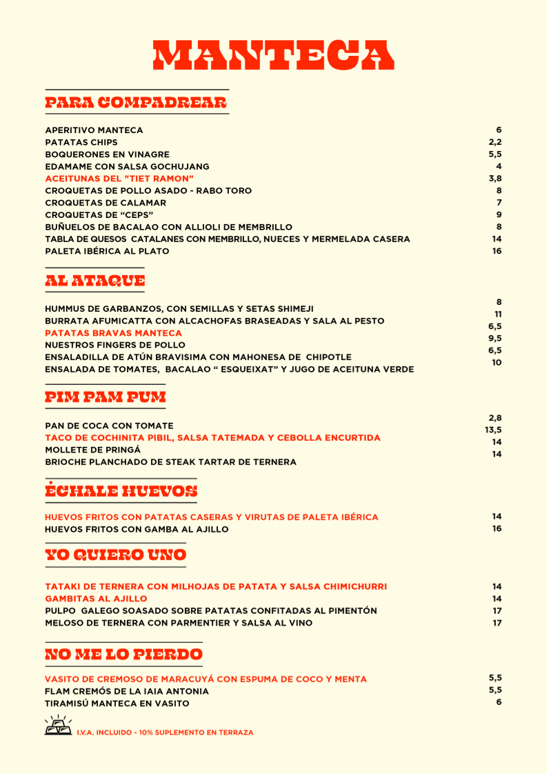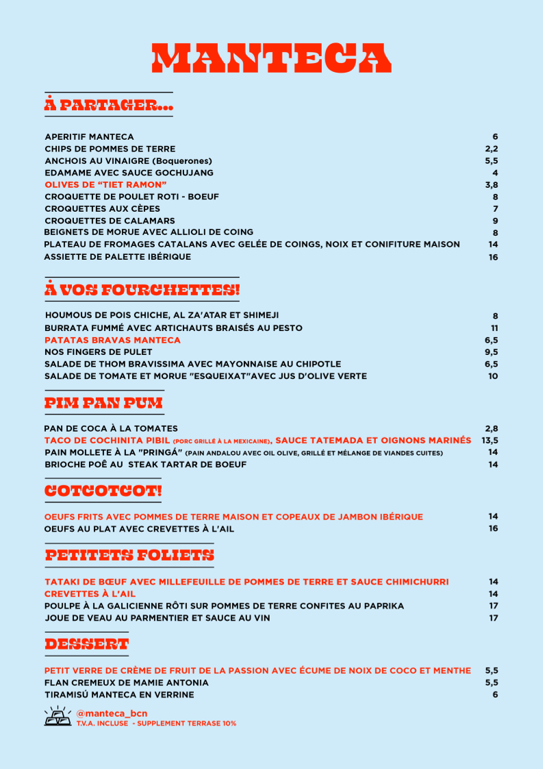 Manteca Menu